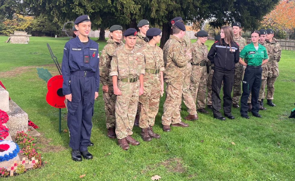 The students, all members of various cadet forces including: RAF, Army, Navy, Royal Marines, Police and St John’s Ambulance, paid their respects to those who have suffered as a consequence of war and to our current serving members of the Armed Forces. Wreaths and poppies were laid at the memorial in the church grounds. A one minute silence was also held at the school at the eleventh hour. Lest we forget.