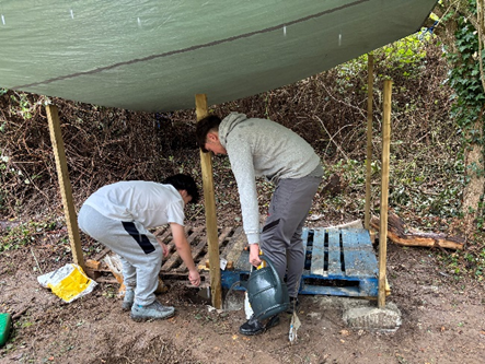 Our weekly outdoor education, internal alternative provision, intervention regularly uses the classroom and surrounding area for outdoor learning, including whittling with Bushcraft knives, creating fire using traditional methods, shelter building in the woods, or as detailed in figure 2 photos, rudimentary construction projects. Having a sheltered area to conduct this sort of outdoor learning, in all weathers, has proven to be incredibly powerful in helping some pupils improve their self-esteem, self-confidence, self-awareness, their ability to regulate and appreciate a very different way of learning.