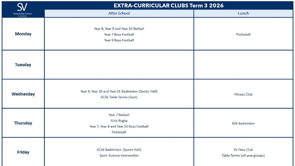 PE Clubs - 2025/26 Term 3